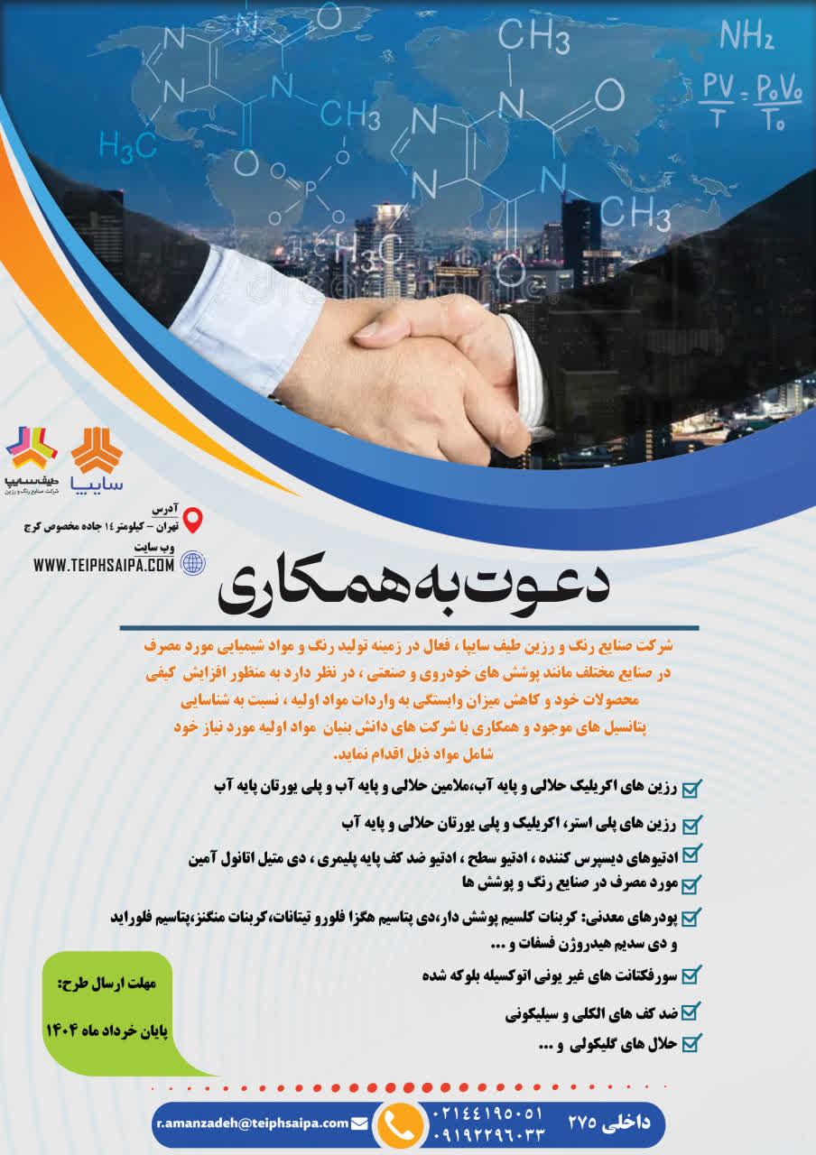 فراخوان شناسایی سازندگان و تامین کنندگان محصولات و مواد اولیه صنایع رنگ و رزین